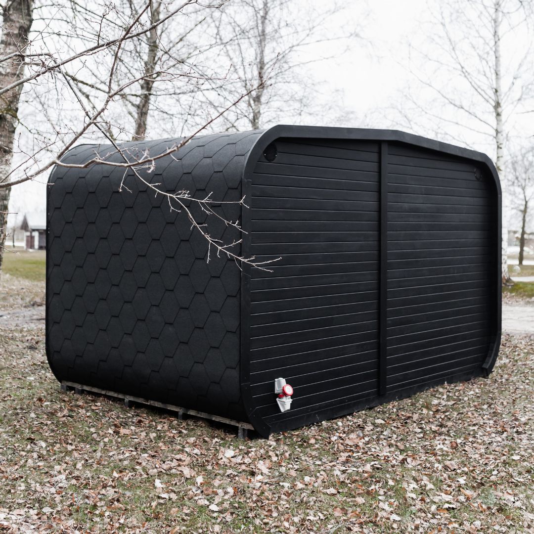 | The sauna is painted black |