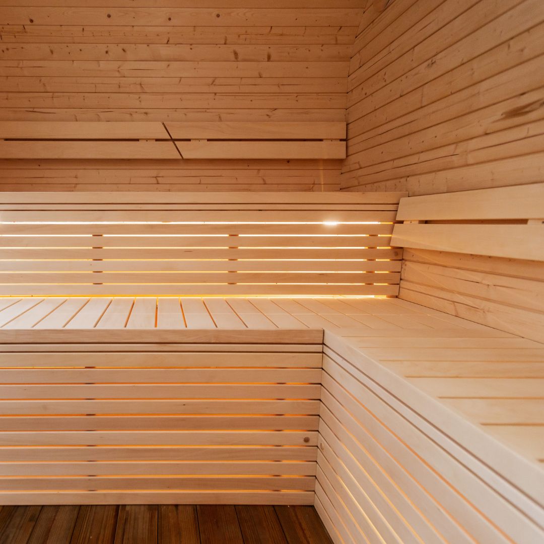 | LED lighting under the benches, in the pre-sauna ceiling and outside |