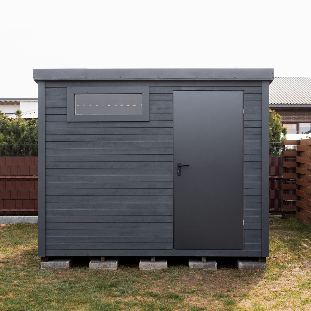The storage shed is painted anthracite